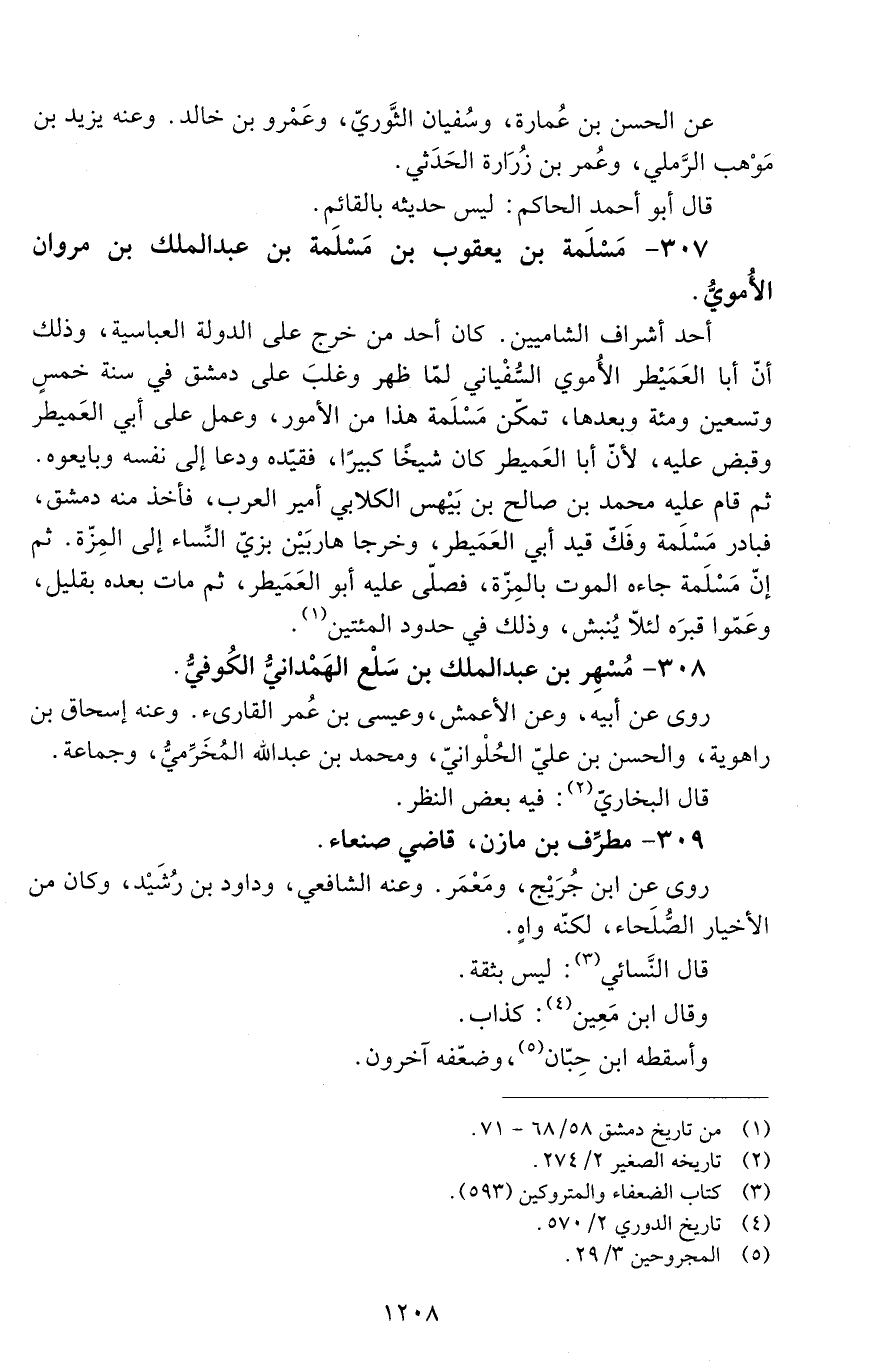 308 - مُسْهِر بْن عَبْد المُلْك بْن سَلَع الهمَدانيّ الكوفيُّ. [الوفاة: 191 - 200 ه]