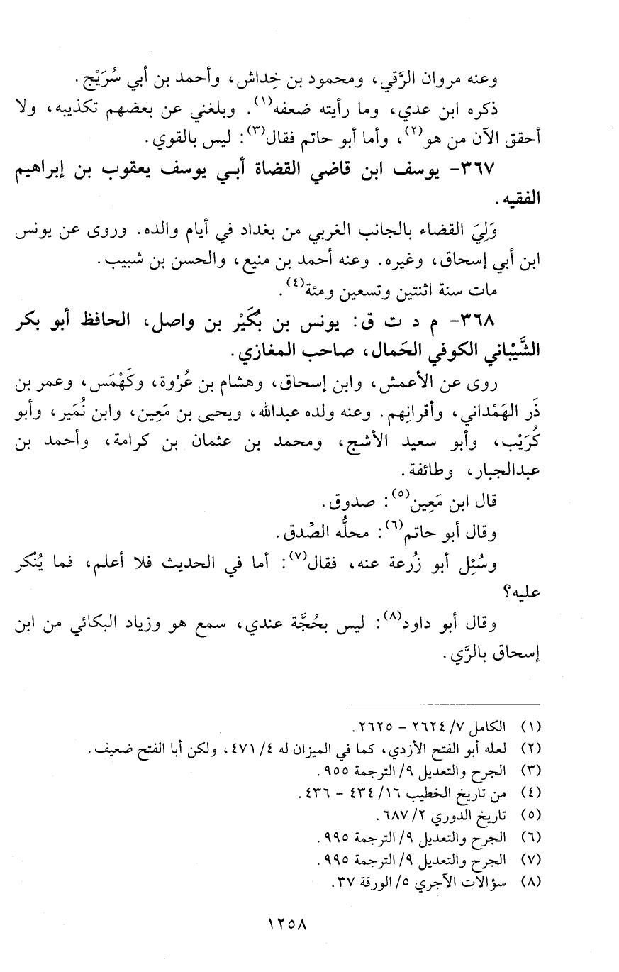 368 - م د ت ق: يونس بْن بُكَيْر بْن واصل، الحافظ أبو بَكْر الشَّيْبانيُّ الكوفيُّ الحَمال، [الوفاة: 191 - 200 ه]