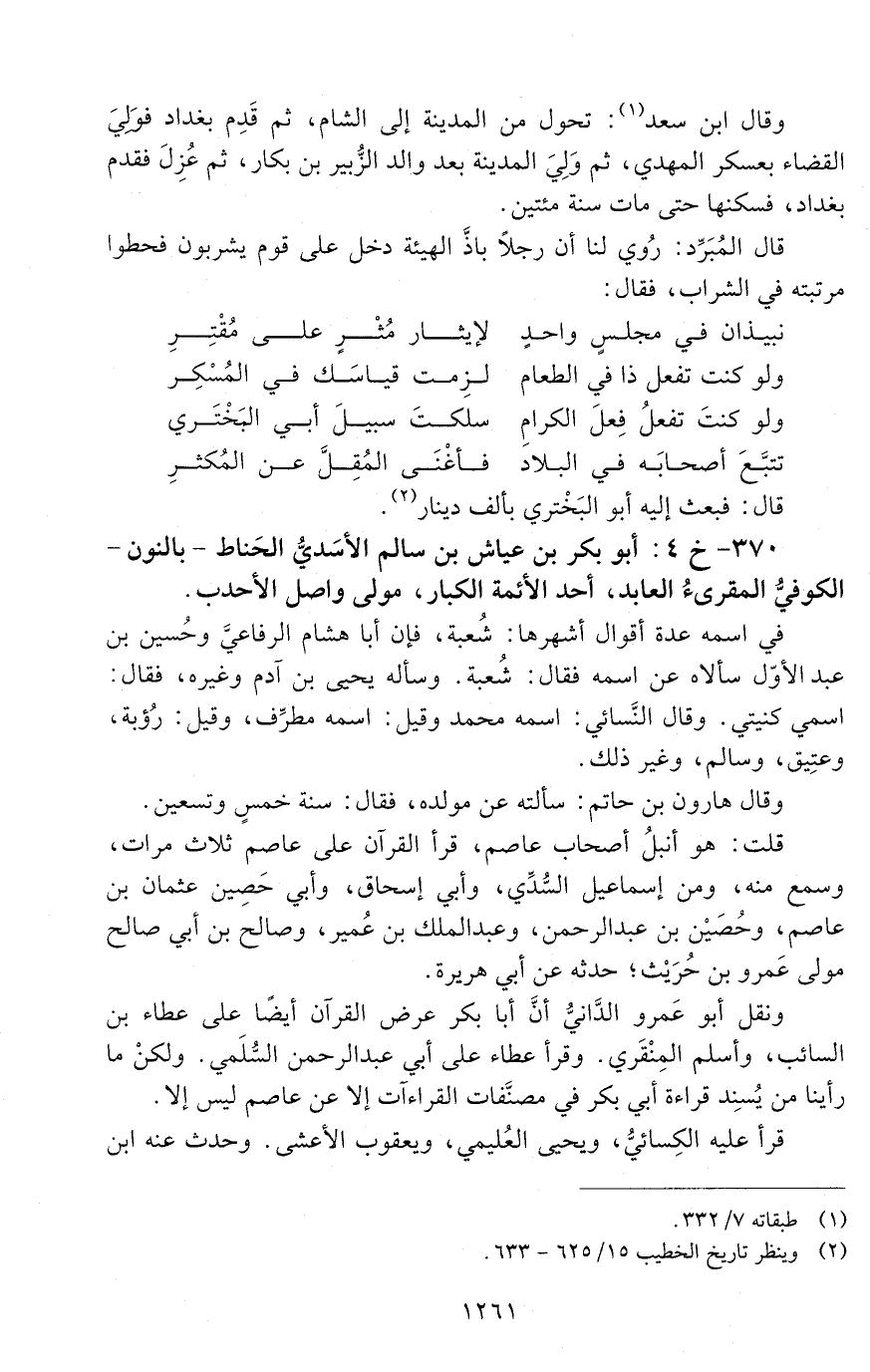 370 - خ 4: أبو بَكْر بْن عيّاش بْن سالم الأسَديّ الحنَّاط - بالنّون - الكُوفيُّ المقرئ العابد، [الوفاة: 191 - 200 ه]