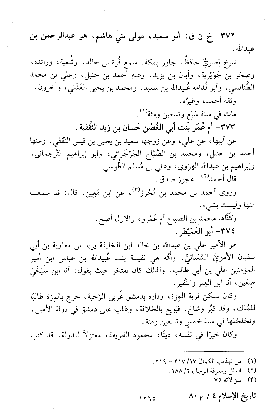 374 - أبو العُمَيْطر، هُوَ الأمير عليّ بْن عبد الله بن خَالِد ابْن الخليفة يزيد بْن معاوية بْن أَبِي سُفْيَان الأمويُّ السُّفيانيّ. [الوفاة: 191 - 200 ه]