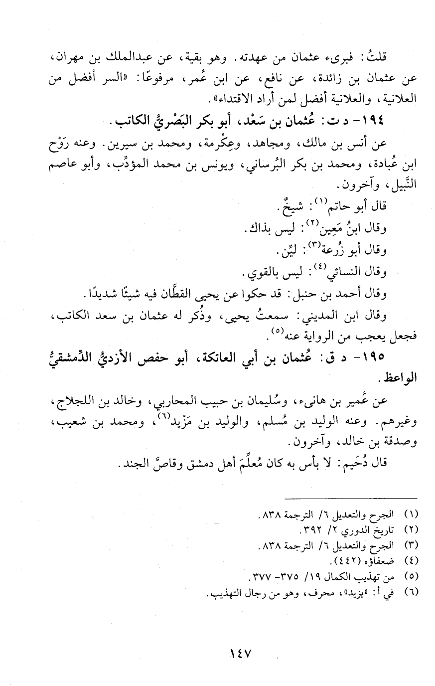 194 - د ت: عثمان بْن سَعْد، أَبُو بكر البَصْريُّ الكاتب. [الوفاة: 151 - 160 ه]