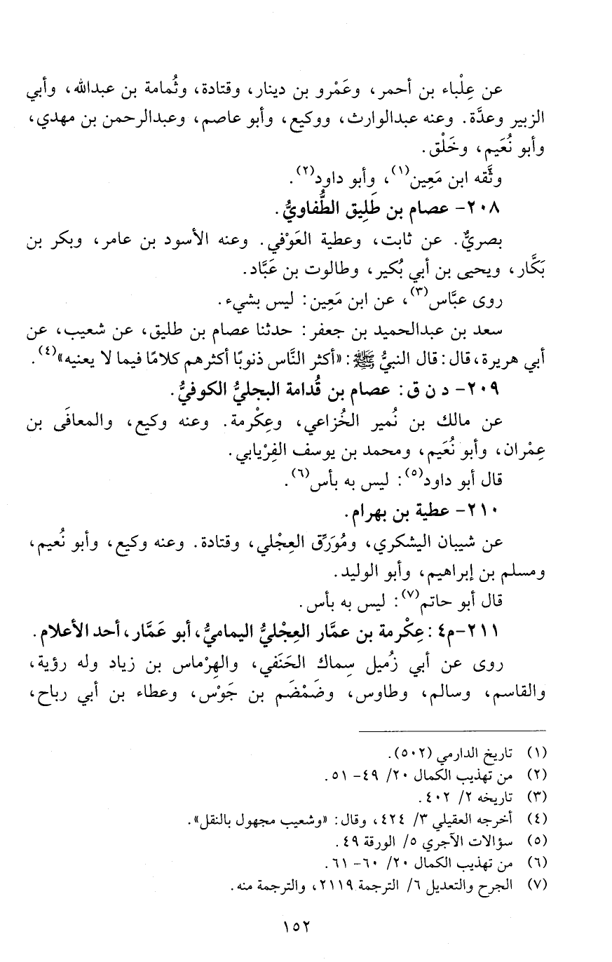 208 - عصام بْن طَليق الطُّفاويُّ [الوفاة: 151 - 160 ه]