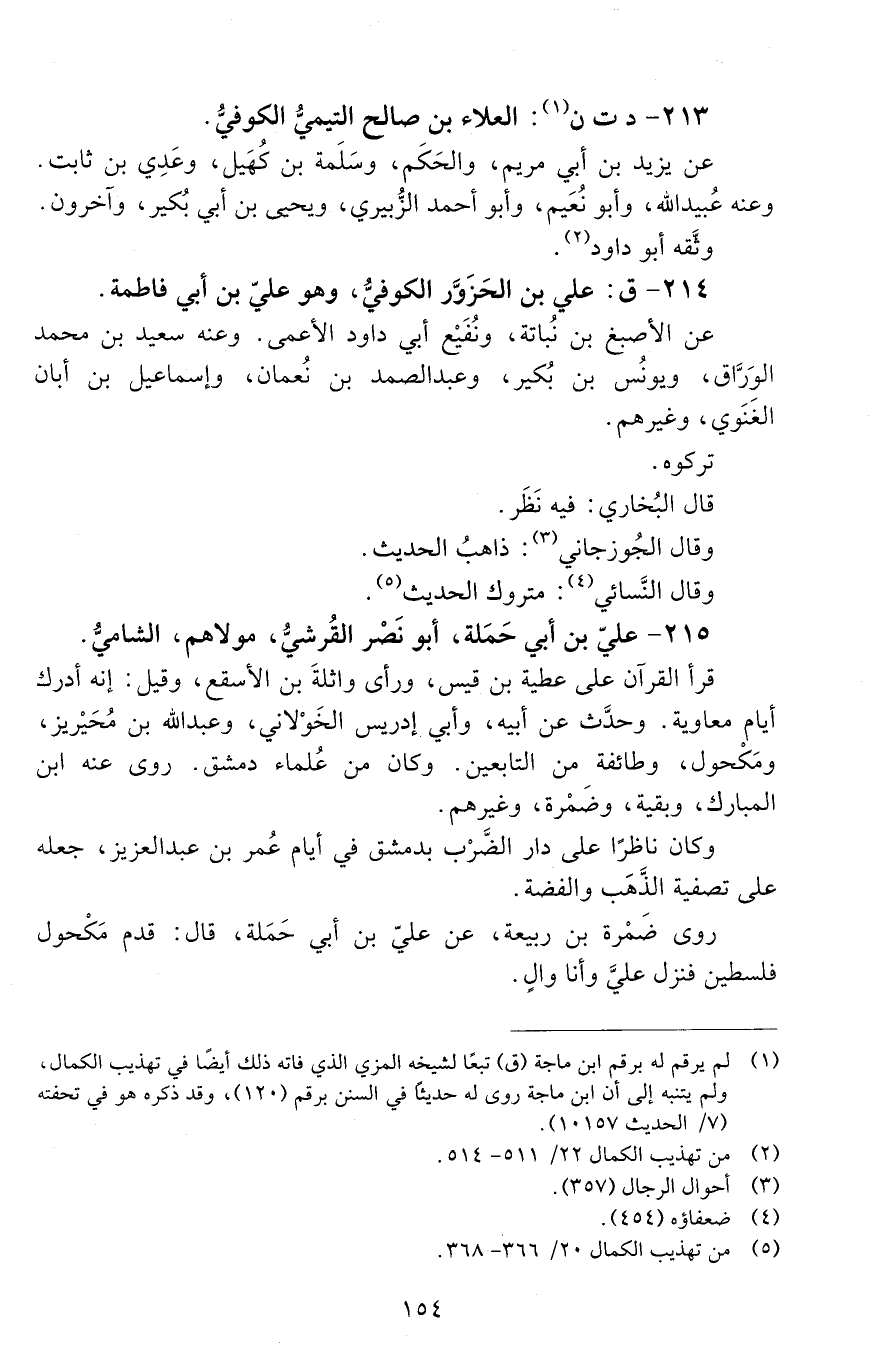 213 - د ت ن: العلاء بْن صالح التيميُّ الكوفيُّ. [الوفاة: 151 - 160 ه]
