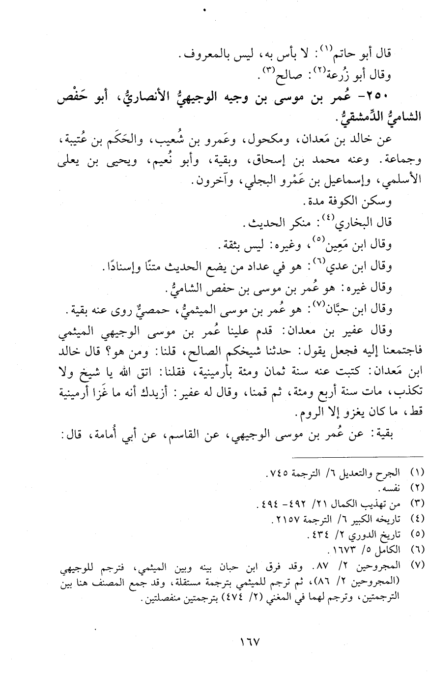 250 - عُمر بْن موسى بْن وجيه الوجيهيُّ الأنصاريُّ، أَبُو حَفْص، الشَّاميُّ الدِّمشقيُّ. [الوفاة: 151 - 160 ه]