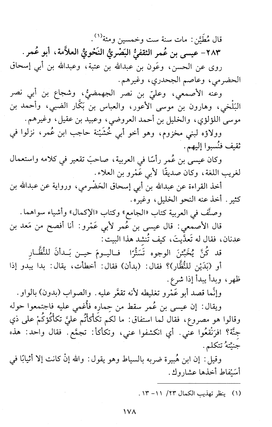 283 - عيسى بْن عُمر الثقفيُّ، البصريُّ النَحْويُّ العلامة، أبو عمر. [الوفاة: 151 - 160 ه]