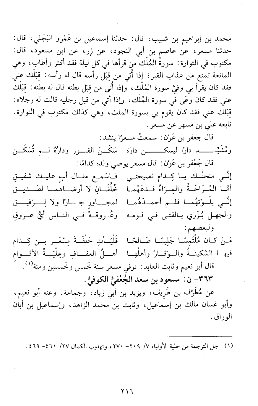 363 - ن: مسعود بْن سعد الجُعْفيُّ الكوفيُّ. [الوفاة: 151 - 160 ه]