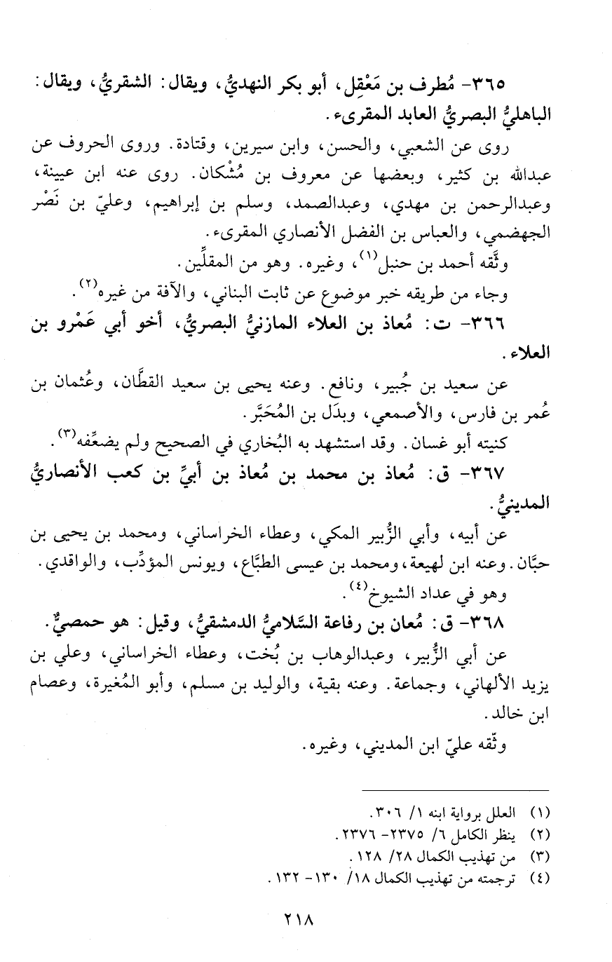 366 - ت: مُعاذ بن العلاء المازني البصري [أَبُو غسان] [الوفاة: 151 - 160 ه]