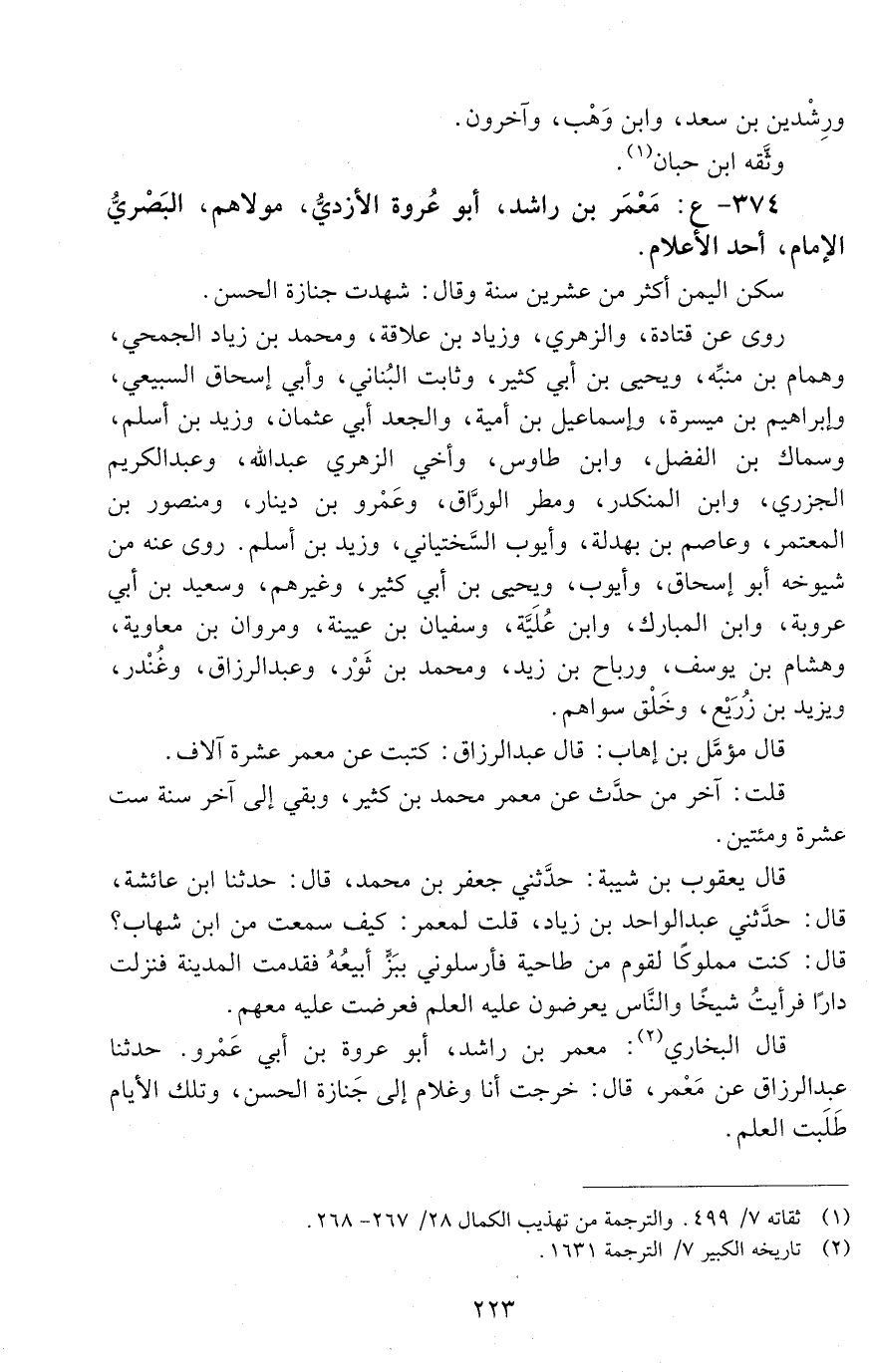 374 - ع: مَعْمَر بْن راشد أَبُو عُروة الأزديُّ، مولاهم الْبَصْرِيّ الإمام [الوفاة: 151 - 160 ه]