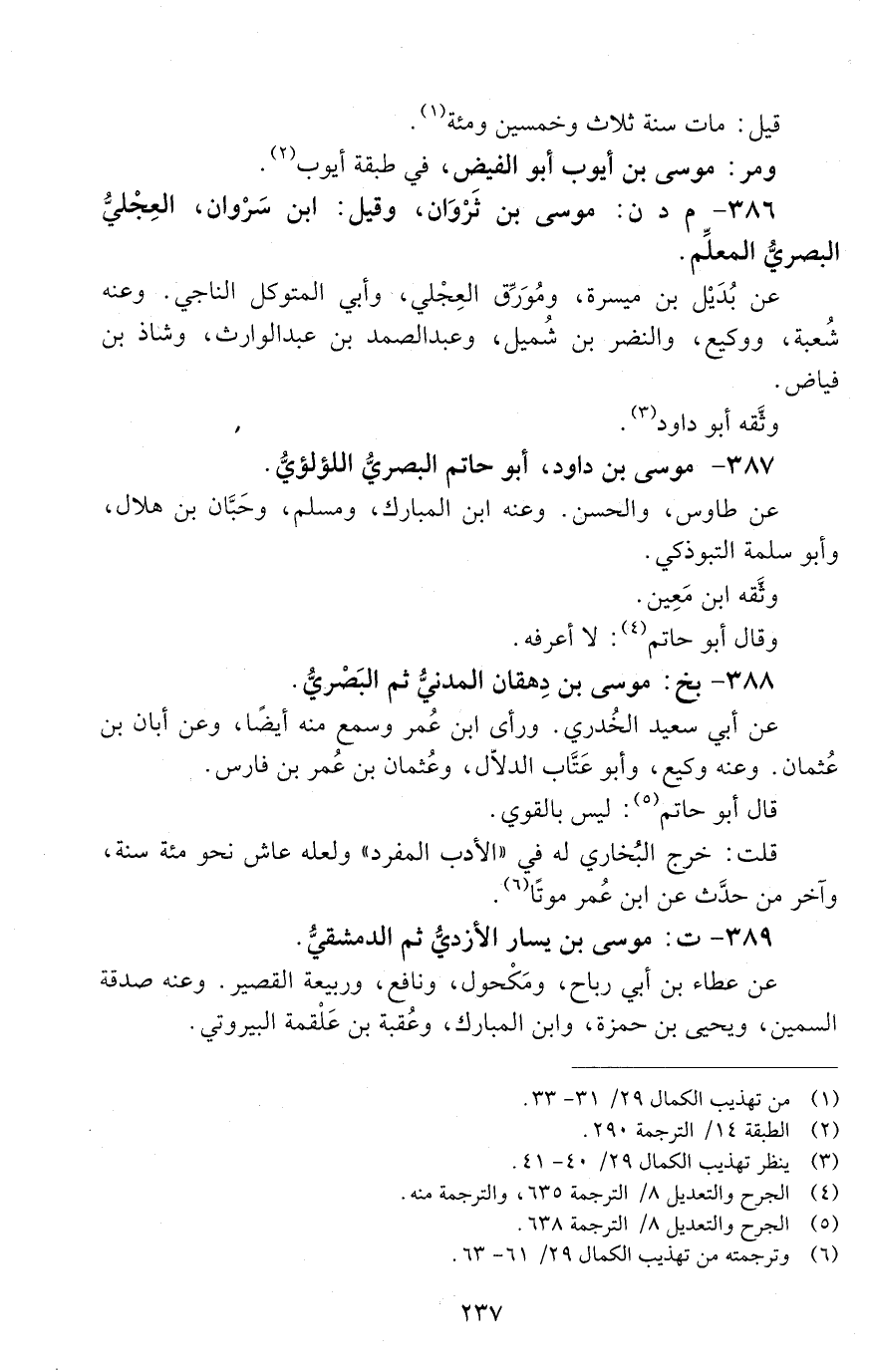 386 - م د ن: موسى بْن ثَرْوان، وَقِيلَ: ابْن سَرْوان، العِجْليُّ البصريُّ المعلِّم. [الوفاة: 151 - 160 ه]