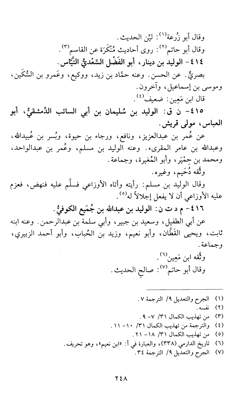 415 - ن ق: الوليد بْن سُلَيْمَان بْن أَبِي السائب الدِّمشقيُّ أَبُو العباس. [الوفاة: 151 - 160 ه]