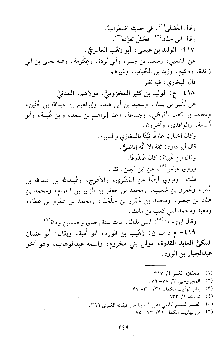 418 - ع: الوليد بْن كثير المَخْزوميُّ مولاهم المدنيُّ. [الوفاة: 151 - 160 ه]