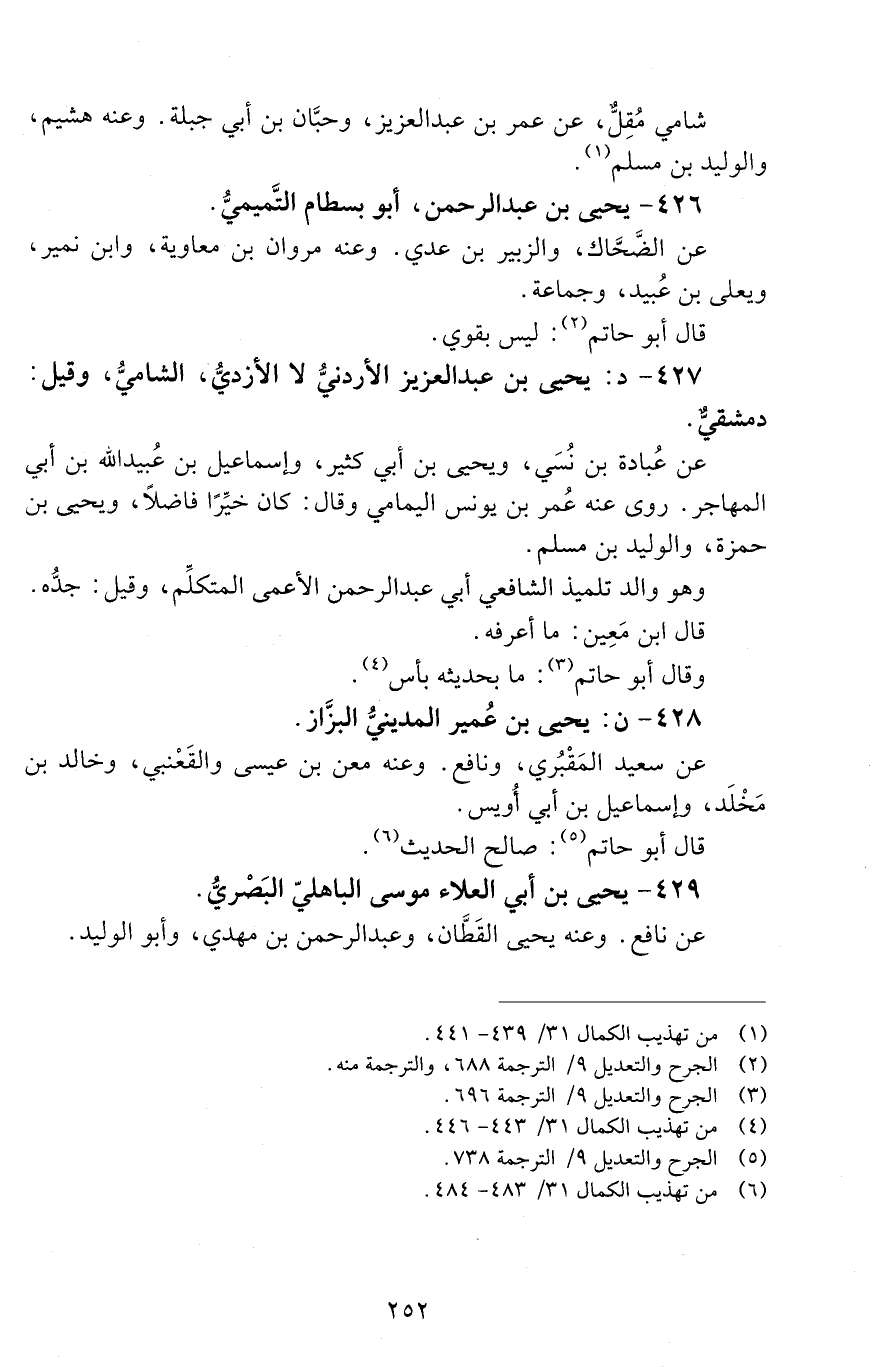 426 - يحيى بْن عَبْد الرحمن أَبُو بسطام التَّميميُّ. [الوفاة: 151 - 160 ه]
