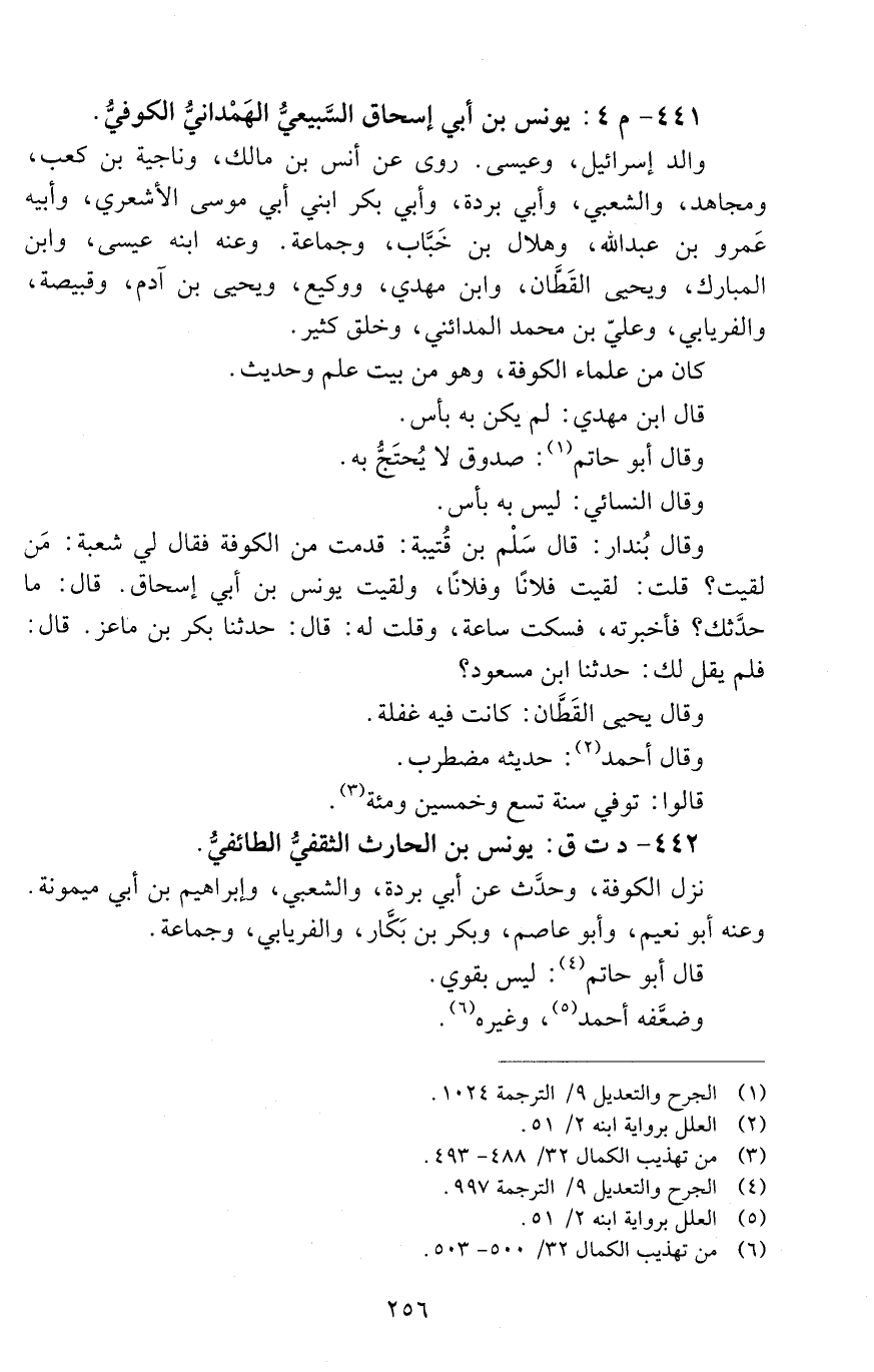 441 - م 4: يونس بْن أَبِي إسحاق السَّبيعيُّ الهَمْدانيُّ الكوفيُّ. [الوفاة: 151 - 160 ه]