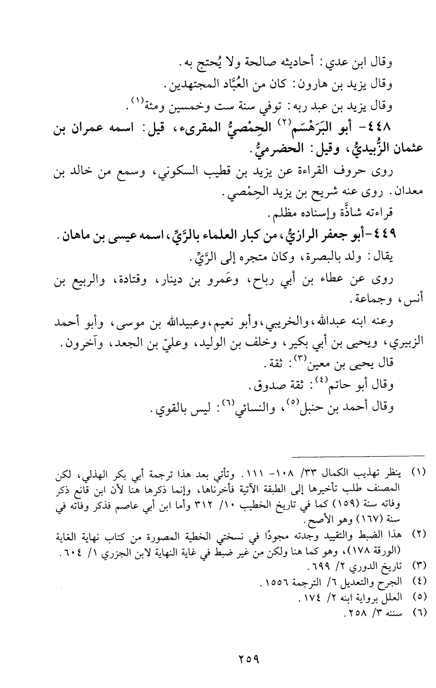 448 - أبو البَرَهْسَم الحِمْصيُّ المقرئ، قيل: اسمه عمران بن عثمان الزُّبيديُّ، وقيل: الحضرميُّ. [الوفاة: 151 - 160 ه]