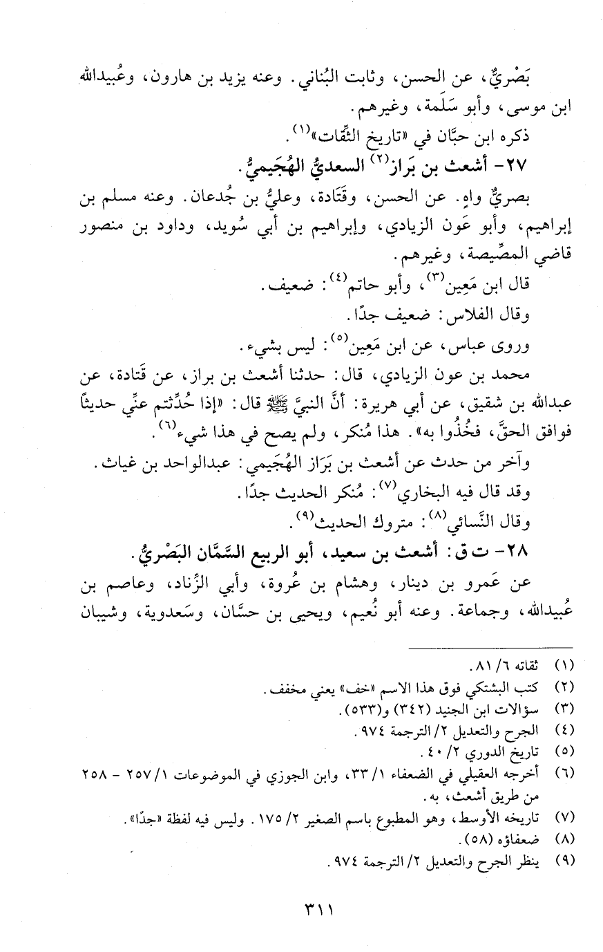 27 - أَشْعَثُ بْنُ بَرَازٍ السَّعْدِيُّ الْهُجيْمِيُّ. [الوفاة: 161 - 170 ه]