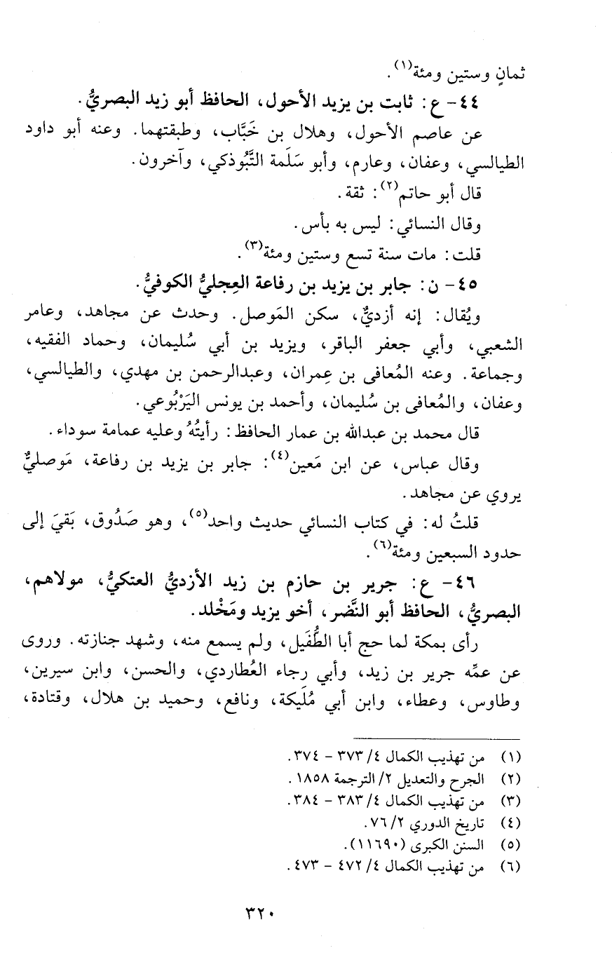 46 - ع: جَرِيرُ بْنُ حَازِمِ بْنِ زَيْدٍ الأَزْدِيُّ الْعَتَكِيُّ، مَوْلاهُمُ، الْبَصْرِيُّ، الْحَافِظُ أَبُو النَّضْرِ، [الوفاة: 161 - 170 ه]
