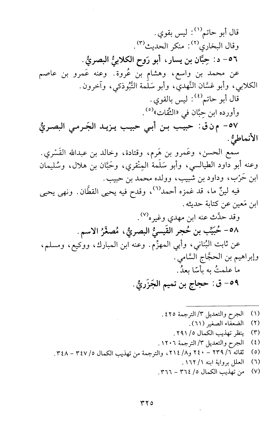 58 - حُبَيِّبُ بْنُ حُجْرٍ الْقَيْسِيُّ الْبَصْرِيُّ، مُصَغَّرُ الاسْمِ. [الوفاة: 161 - 170 ه]
