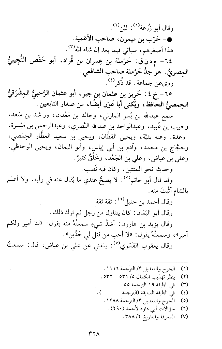 65 - خ 4: حَرِيزُ بْنُ عُثْمَانَ بْنِ جَبْرٍ، أَبُو عُثْمَانَ الرَّحَبِيُّ المشرقي الحمصي الحافظ، ويكنى أبا عون أيضا، [الوفاة: 161 - 170 ه]