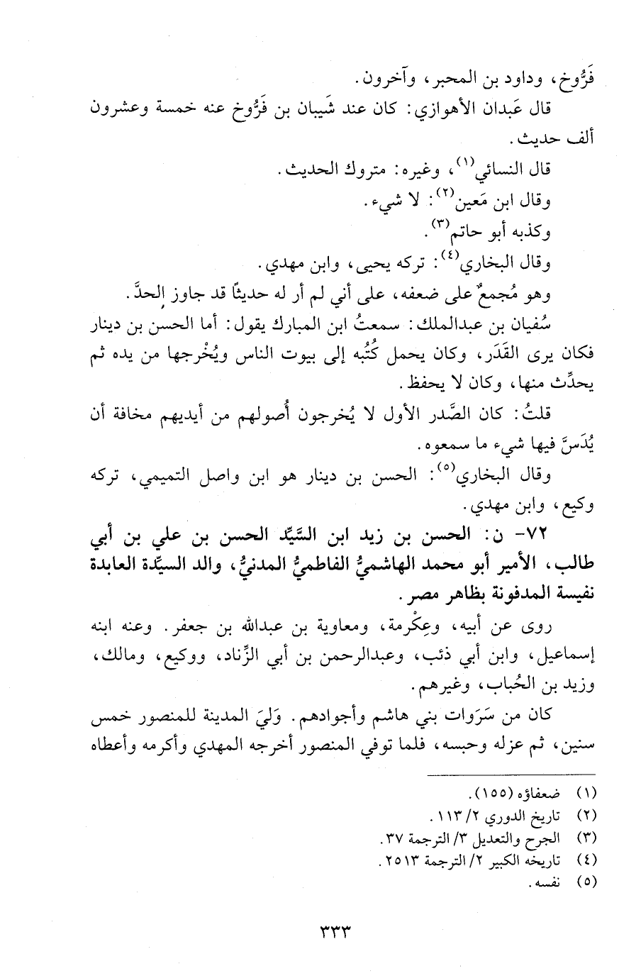 72 - ن: الْحَسَنُ بْنُ زَيْدِ ابْنِ السَّيِّدِ الْحَسَنِ بْنِ عَلِيِّ بْنِ أَبِي طَالِبٍ، الأَمِيرُ أَبُو مُحَمَّدٍ الْهَاشِمِيُّ الْفَاطِمِيُّ الْمَدَنِيُّ، [الوفاة: 161 - 170 ه]