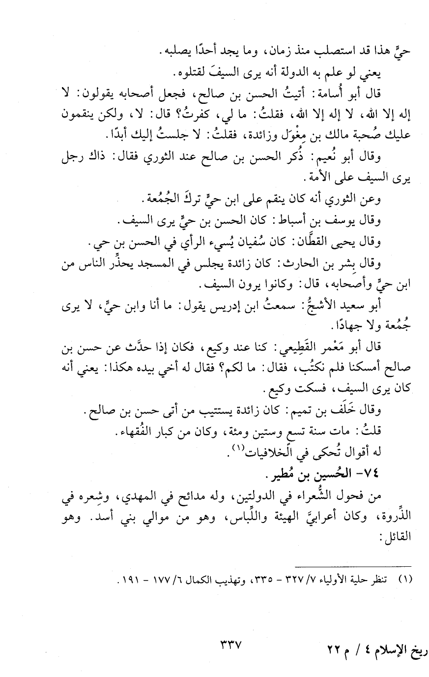74 - الحسين بن مطير. [الوفاة: 161 - 170 ه]