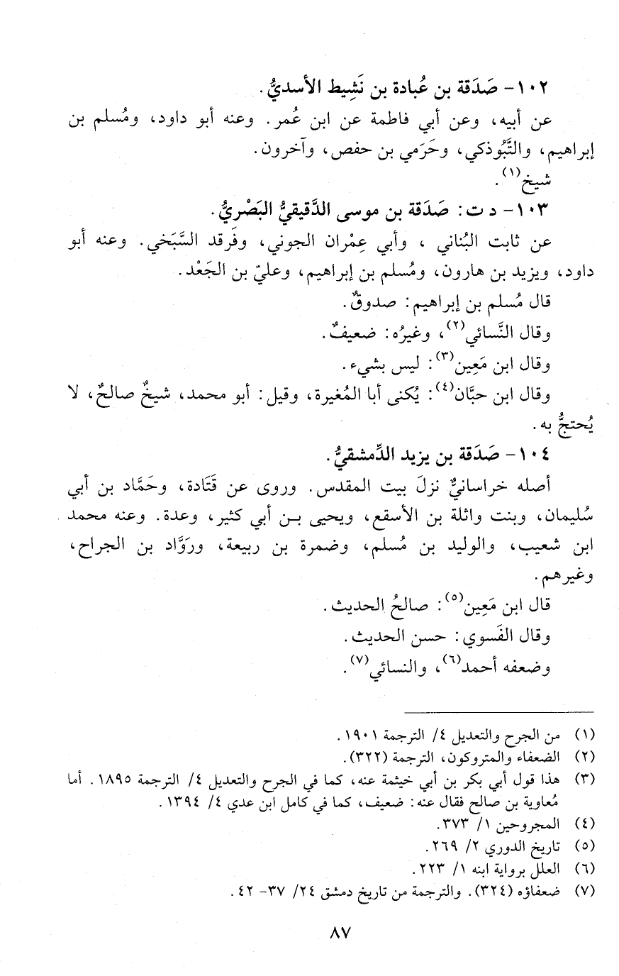 104 - صدقة بْن يزيد الدمشقي. [الوفاة: 151 - 160 ه]