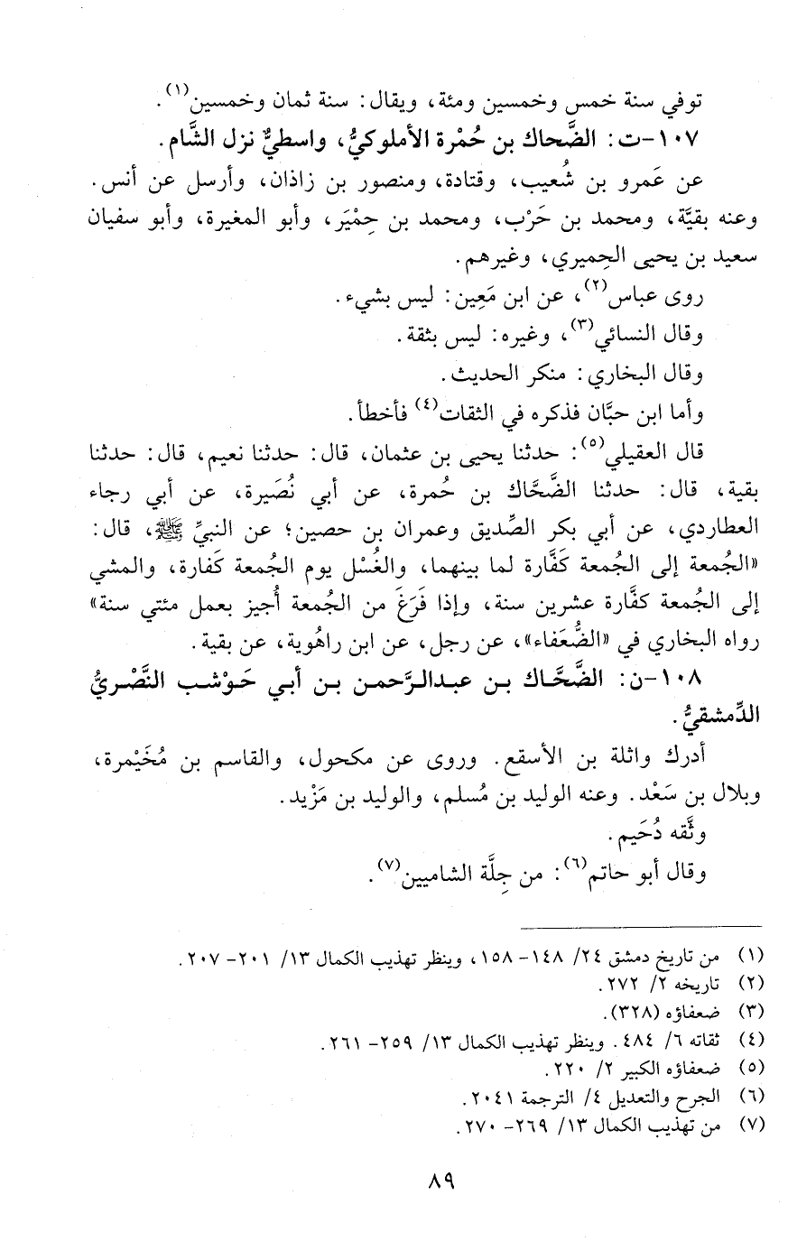 108 - ن: الضَّحَّاك بْن عَبْد الرحمن بْن أَبِي حَوْشب النَّصْريُّ الدِّمشقيُّ [الوفاة: 151 - 160 ه]