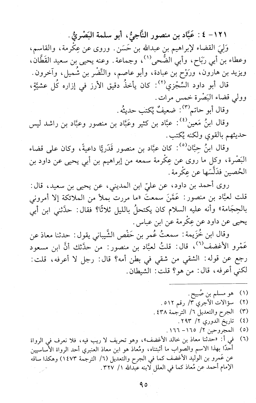 121 - 4: عباد بْن منصور النَّاجيُّ أَبُو سلمة البَصْريُّ. [الوفاة: 151 - 160 ه]