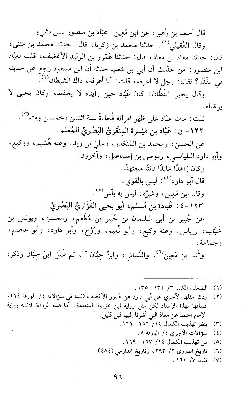 123 - 4: عُبادة بْن مُسلم، أَبُو يحيى الفزاريُّ البَصْريُّ. [الوفاة: 151 - 160 ه]