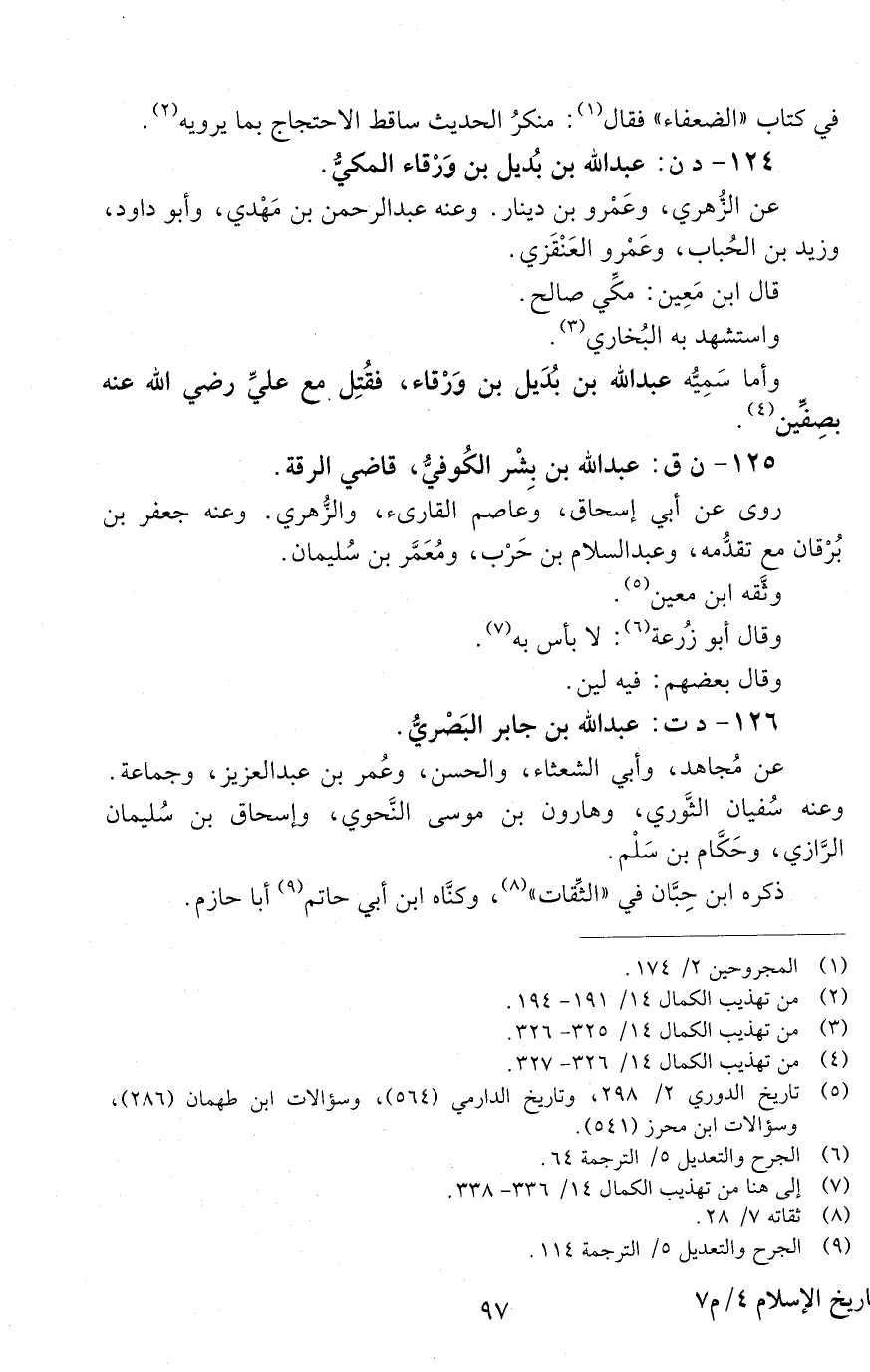124 - د ن: عَبْد الله بْن بُديل بْن وَرْقاء المكيُّ. [الوفاة: 151 - 160 ه]