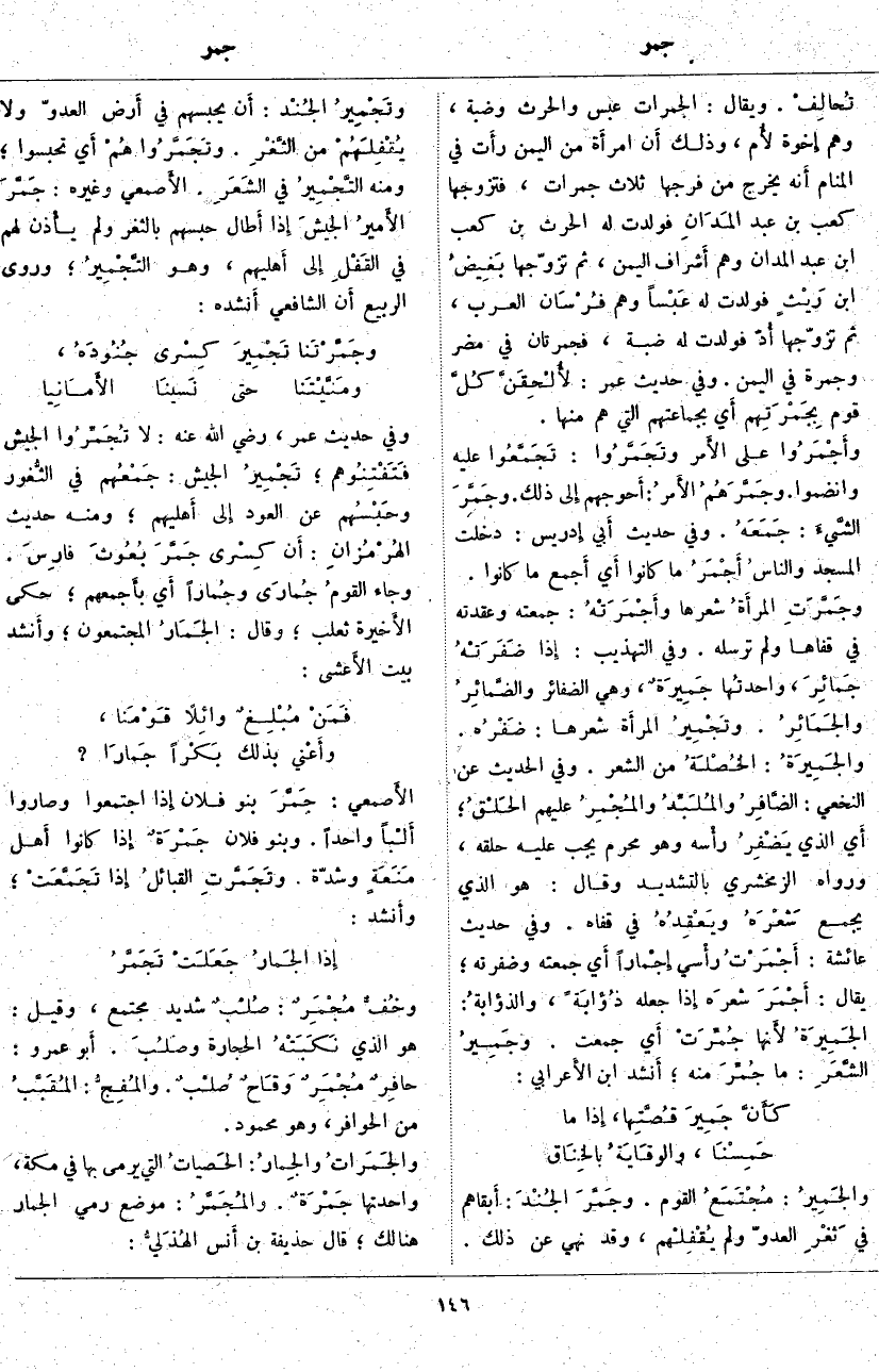 . الأَصمعي: جَمَّرَ بَنُو فُلَانٍ إِذا اجْتَمَعُوا وَصَارُوا أَلْباً وَاحِدًا. وَبَنُو فُلَانٍ جَمْرَةٌ إِذا كَانُوا أَهل مَنَعَةٍ وَشِدَّةٍ. وتَجَمَّرتِ القبائلُ إِذا تَجَمَّعَتْ؛ وأَنشد: