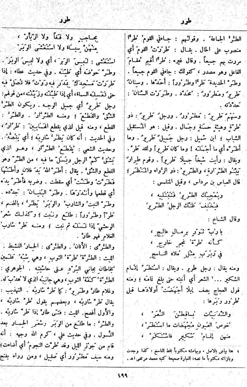 وَمِنْهُ يُقَالُ: رَجُلٌ طَرِيرٌ. وَيُقَالُ: اسْتَطَرَّ إِتْمام الشَّكِيرِ «2» .... الشَّعْرِ أَي أَنبته حَتَّى بَلَغَ تمامَه؛ وَمِنْهُ قَوْلُ الْعَجَّاجِ يَصِفُ إِبلًا أَجْهَضَتْ أَولادَها قَبْلَ طُرُور وبَرها: