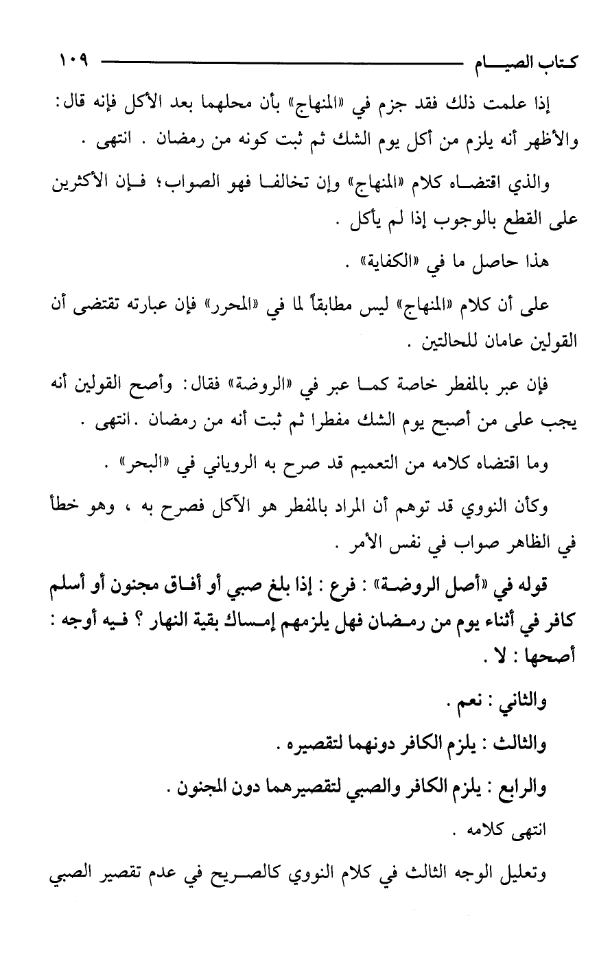 قوله في "أصل الروضة": فرع: إذا بلغ صبي أو أفاق مجنون أو أسلم كافر في أثناء يوم من رمضان فهل يلزمهم إمساك بقية النهار؟ فيه أوجه: أصحها: لا.