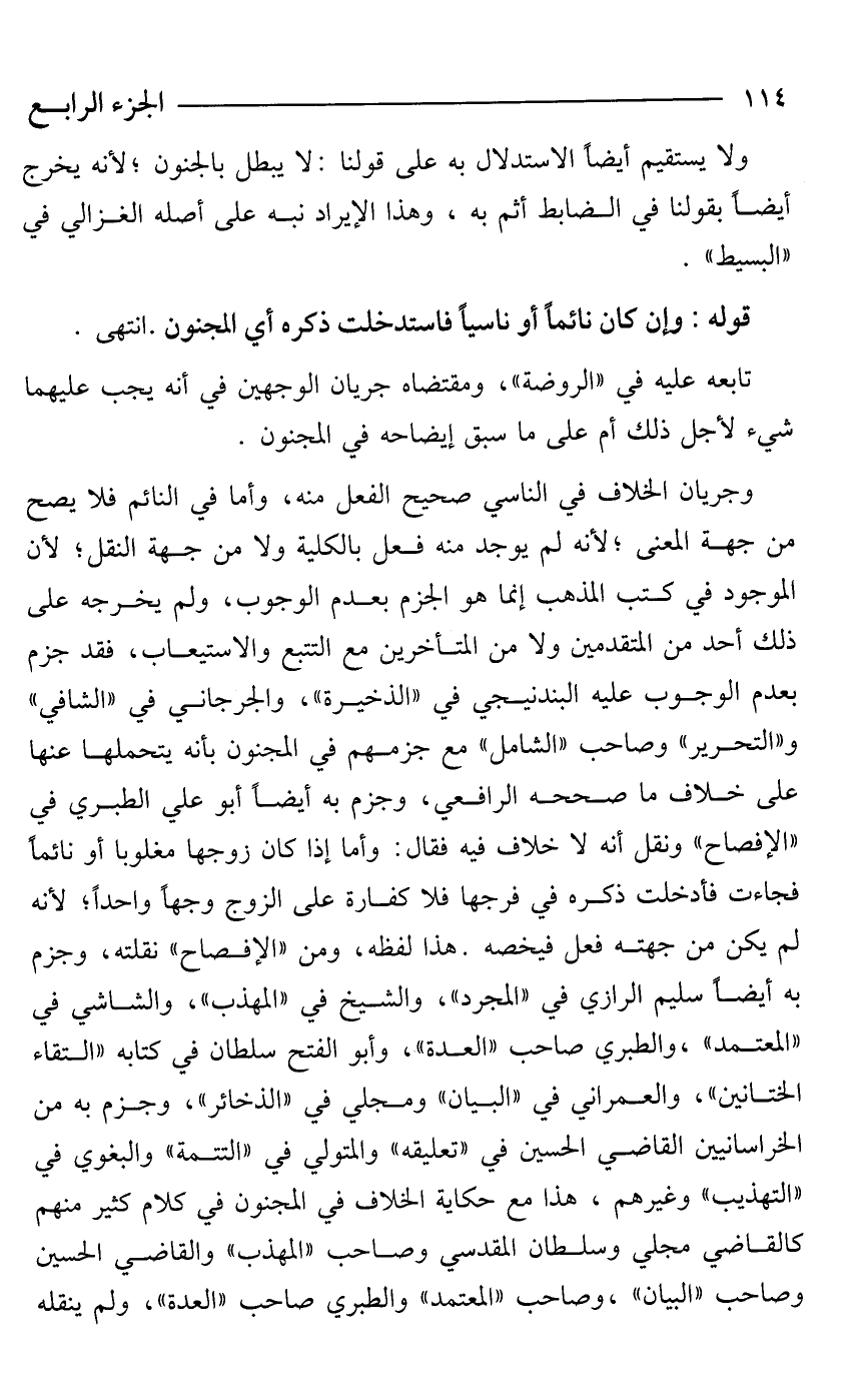 وجريان الخلاف في الناسي صحيح الفعل منه، وأما في النائم فلا يصح من جهة المعنى؛ لأنه لم يوجد منه فعل بالكلية ولا من جهة النقل؛ لأن الموجود في كتب المذهب إنما هو الجزم بعدم الوجوب، ولم يخرجه على ذلك أحد من المتقدمين ولا من المتأخرين مع التتبع والاستيعاب، فقد جزم بعدم الوجوب عليه البندنيجي في "الذخيرة"، والجرجاني في "الشافي" و"التحرير" وصاحب "الشامل" مع جزمهم في المجنون بأنه يتحملها عنها على خلاف ما صححه الرافعي، وجزم به أيضًا أبو علي الطبري في "الإفصاح" ونقل أنه لا خلاف فيه فقال: وأما إذا كان زوجها مغلوبا أو نائمًا فجاءت فأدخلت ذكره في فرجها فلا كفارة على الزوج وجهًا واحدًا؛ لأنه لم يكن من جهته فعل فيخصه. هذا لفظه، ومن "الإفصاح" نقلته، وجزم به أيضًا سليم الرازي في "المجرد"، والشيخ في "المهذب"، والشاشي في "المعتمد"، والطبري صاحب "العدة"، وأبو الفتح سلطان في كتابه "التقاء الختانين"، والعمراني في "البيان" ومجلي في "الذخائر"، وجزم به من الخراسانيين القاضي الحسين في "تعليقه" والمتولي في "التتمة" والبغوي في "التهذيب" وغيرهم، هذا مع حكاية الخلاف في المجنون في كلام كثير منهم كالقاضي مجلي وسلطان المقدسي وصاحب "المهذب" والقاضي الحسين وصاحب "البيان"، وصاحب "المعتمد" والطبري صاحب "العدة"، ولم ينقله