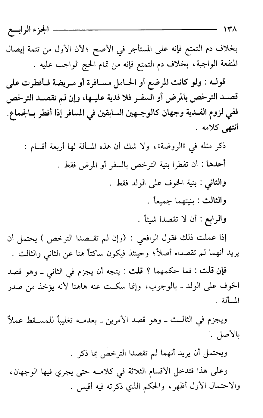 ذكر مثله في "الروضة"، ولا شك أن هذه المسألة لها أربعة أقسام: