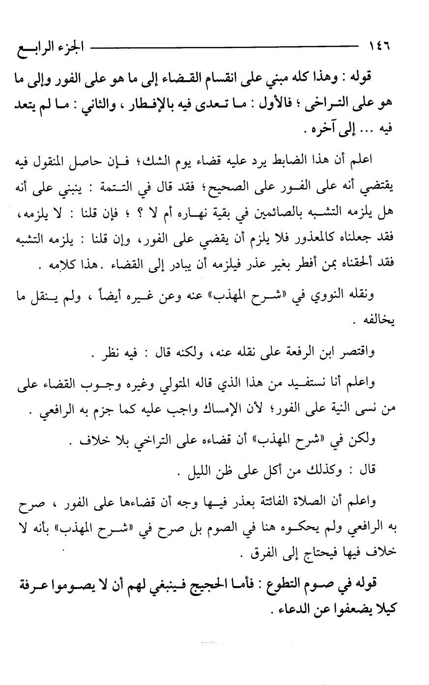 ولكن في "شرح المهذب" أن قضاءه على التراخي بلا خلاف.