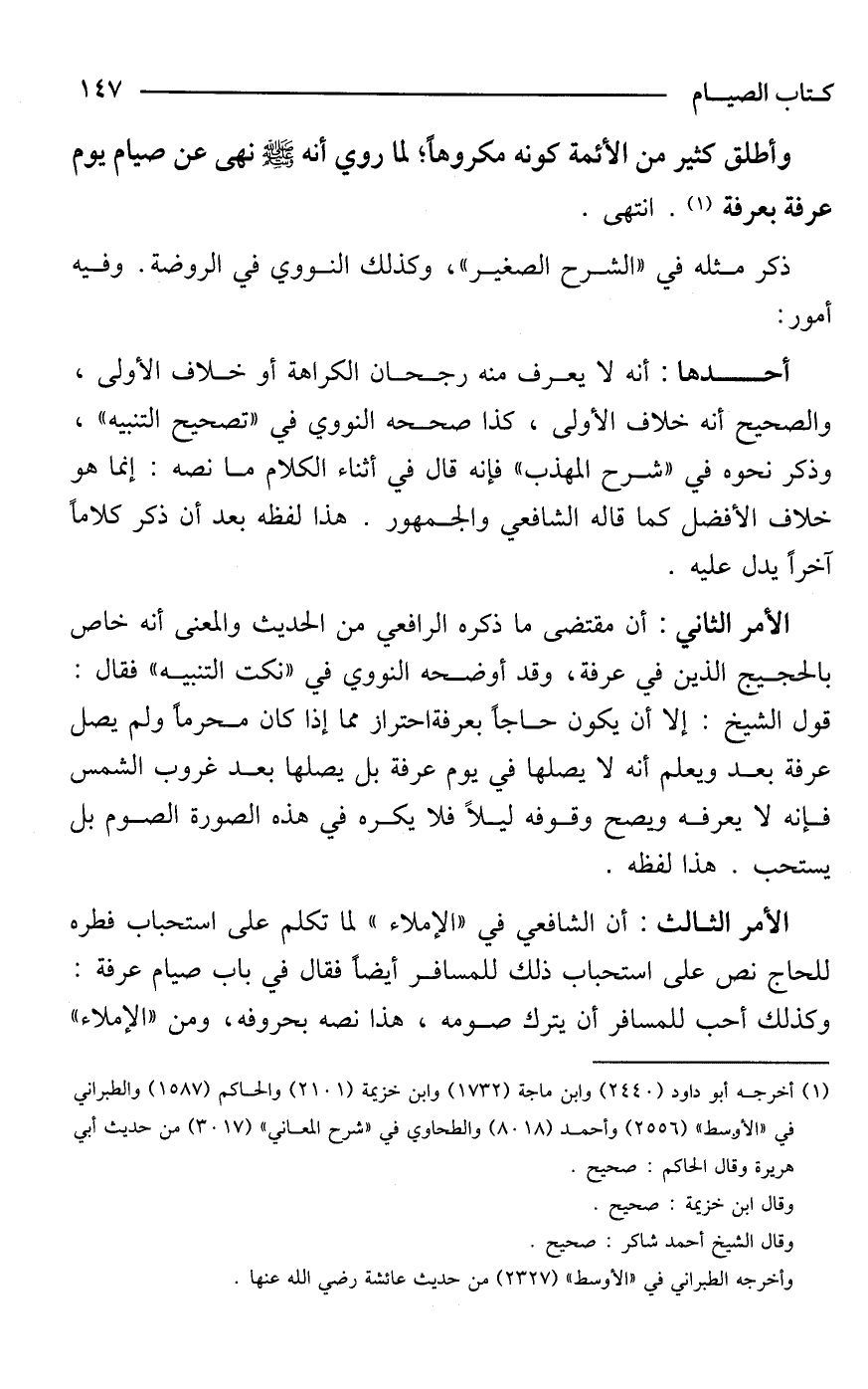 الأمر الثالث: أن الشافعي في "الإملاء" لما تكلم على استحباب فطره للحاج نص على استحباب ذلك للمسافر أيضًا فقال في باب صيام عرفة: وكذلك أحب للمسافر أن يترك صومه، هذا نصه بحروفه، ومن "الإملاء"