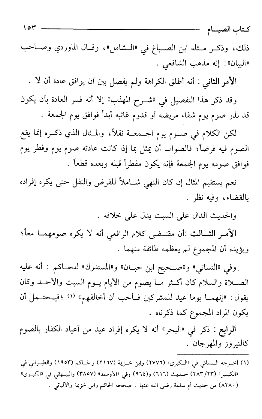 الرابع: ذكر في "البحر" أنه لا يكره إفراد عيد من أعياد الكفار بالصوم كالنيروز والمهرجان.