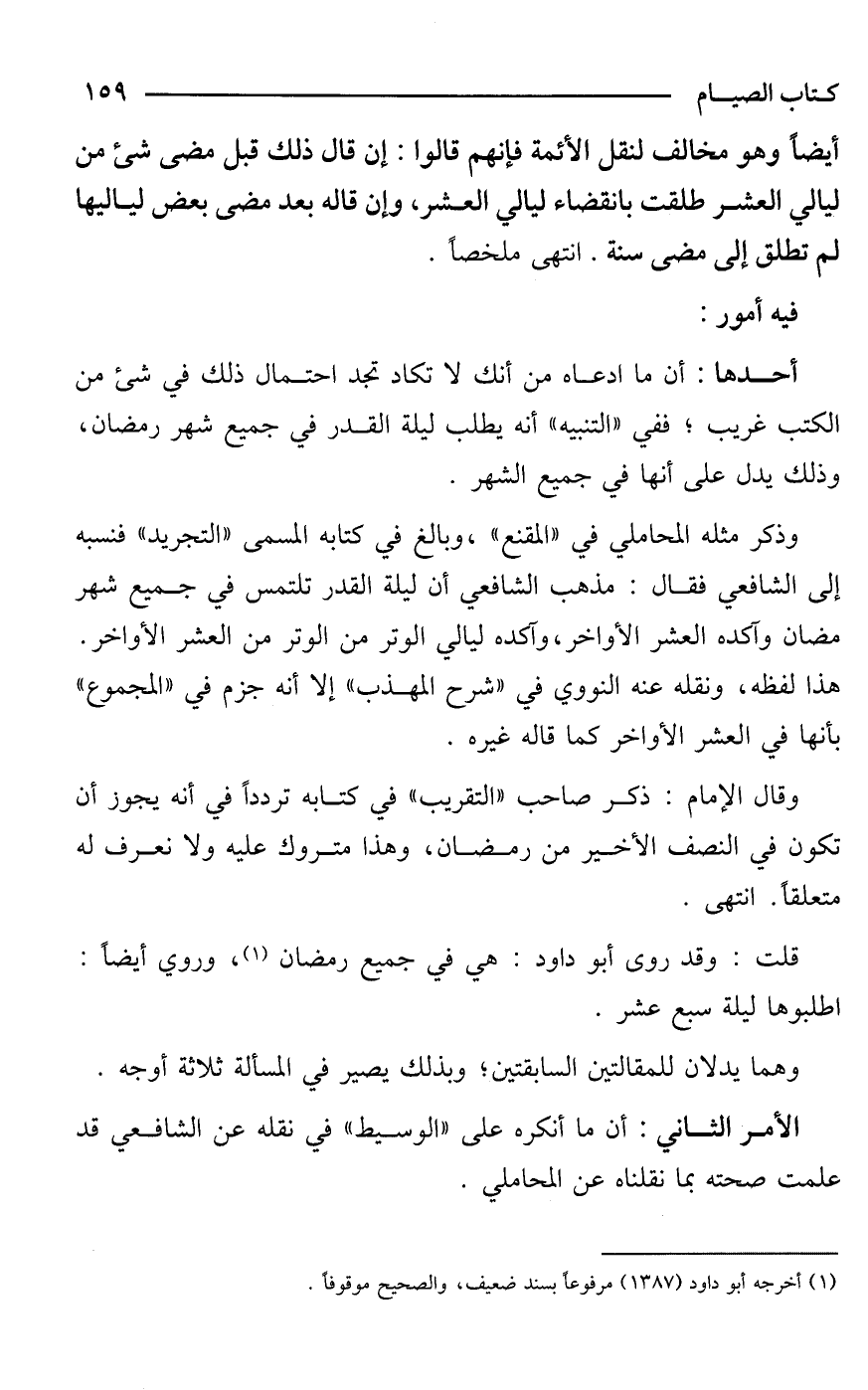 وذكر مثله المحاملي في "المقنع"، وبالغ في كتابه المسمى "التجريد" فنسبه إلى الشافعي فقال: مذهب الشافعي أن ليلة القدر تلتمس في جميع شهر رمضان وآكده العشر الأواخر، وآكده ليالي الوتر من العشر الأواخر. هذا لفظه، ونقله عنه النووي في "شرح المهذب" إلا أنه جزم في "المجموع" بأنها في العشر الأواخر كما قاله غيره.