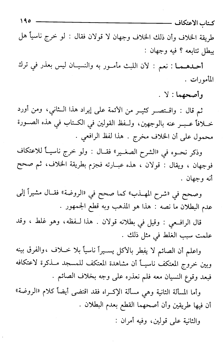 وذكر نحوه في "الشرح الصغير" فقال: ولو خرج ناسيًا للاعتكاف فوجهان، ويقال: قولان، هذه عبارته فجزم بطريقة الخلاف، ثم صحح أنه وجهان.
