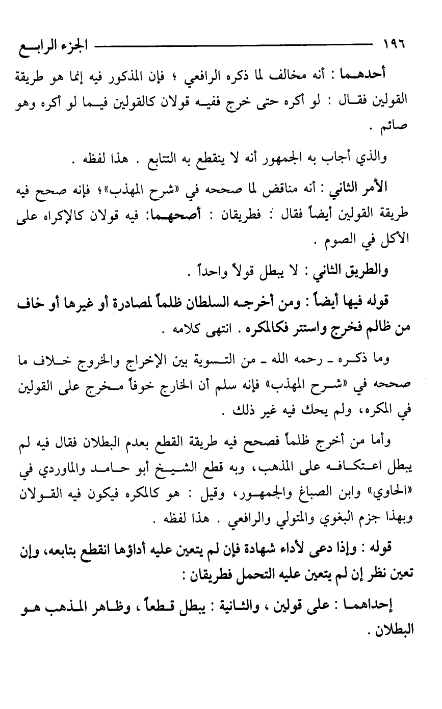 وأما من أخرج ظلمًا فصحح فيه طريقة القطع بعدم البطلان فقال فيه لم يبطل اعتكافه على المذهب، وبه قطع الشيخ أبو حامد والماوردي في "الحاوي" وابن الصباغ والجمهور، وقيل: هو كالمكره فيكون فيه القولان وبهذا جزم البغوي والمتولي والرافعي. هذا لفظه.