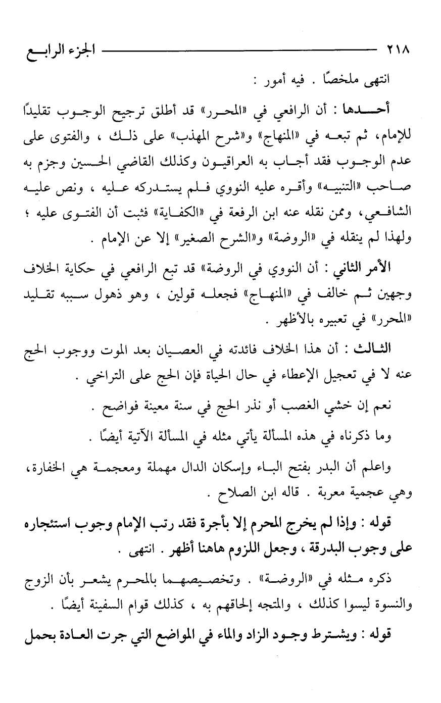 أحدها: أن الرافعي في "المحرر" قد أطلق ترجيح الوجوب تقليدًا للإمام، ثم تبعه في "المنهاج" و"شرح المهذب" على ذلك، والفتوى على عدم الوجوب فقد أجاب به العراقيون وكذلك القاضي الحسين وجزم به صاحب "التنبيه" وأقره عليه النووي فلم يستدركه عليه، ونص عليه الشافعي، وممن نقله عنه ابن الرفعة في "الكفاية" فثبت أن الفتوى عليه؛ ولهذا لم ينقله في "الروضة" و"الشرح الصغير" إلا عن الإمام.