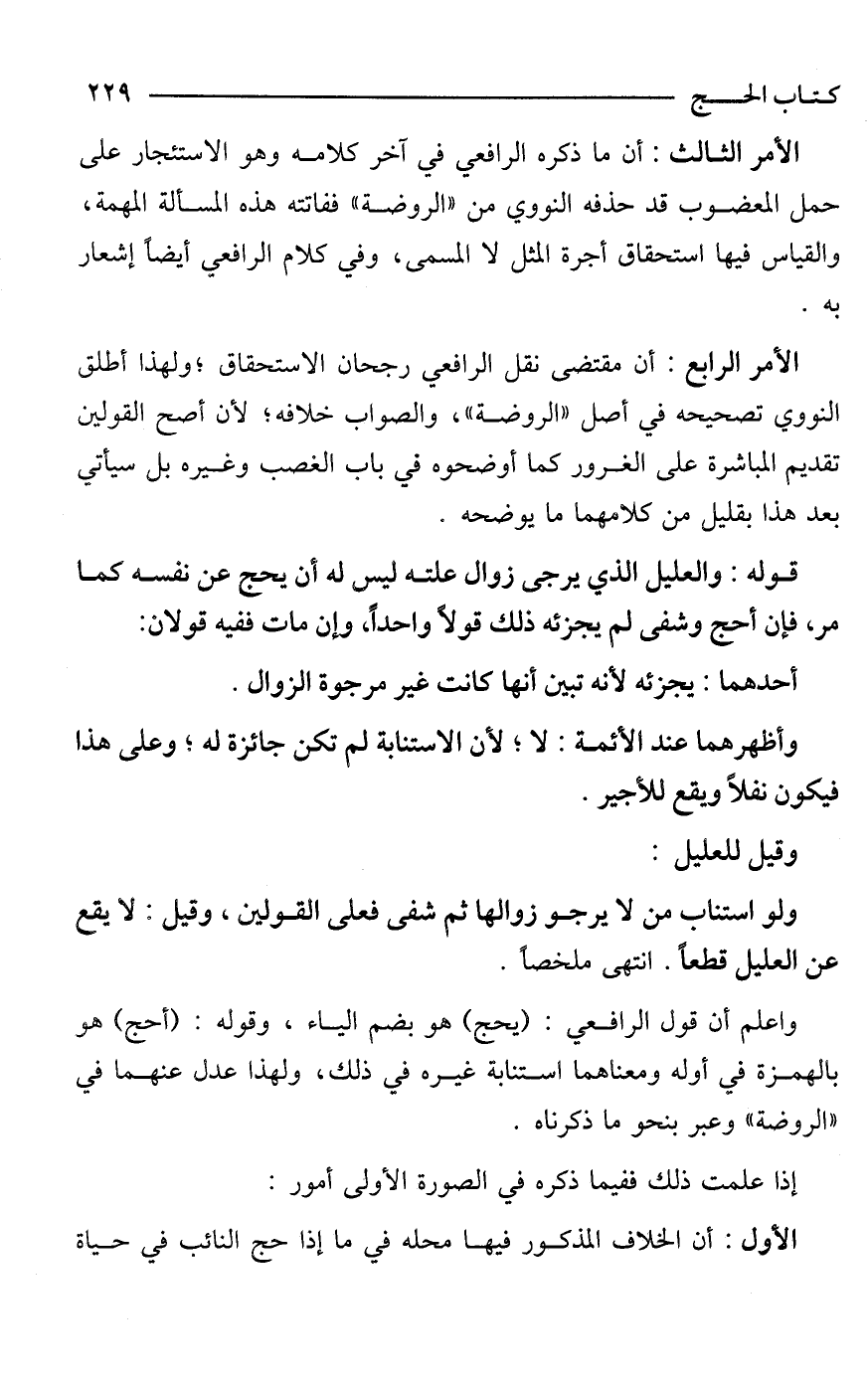الأمر الثالث: أن ما ذكره الرافعي في آخر كلامه وهو الاستئجار على حمل المعضوب قد حذفه النووي من "الروضة" ففاتته هذه المسألة المهمة، والقياس فيها استحقاق أجرة المثل لا المسمى، وفي كلام الرافعي أيضًا إشعار به.