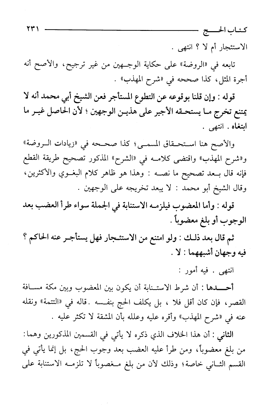 أحدها: أن شرط الاستنابة أن يكون بين المعضوب وبين مكة مسافة القصر، فإن كان أقل فلا، بل يكلف الحج بنفسه. قاله في "التتمة" ونقله عنه في "شرح المهذب" وأقره عليه وعلله بأن المشقة لا تكثر عليه.