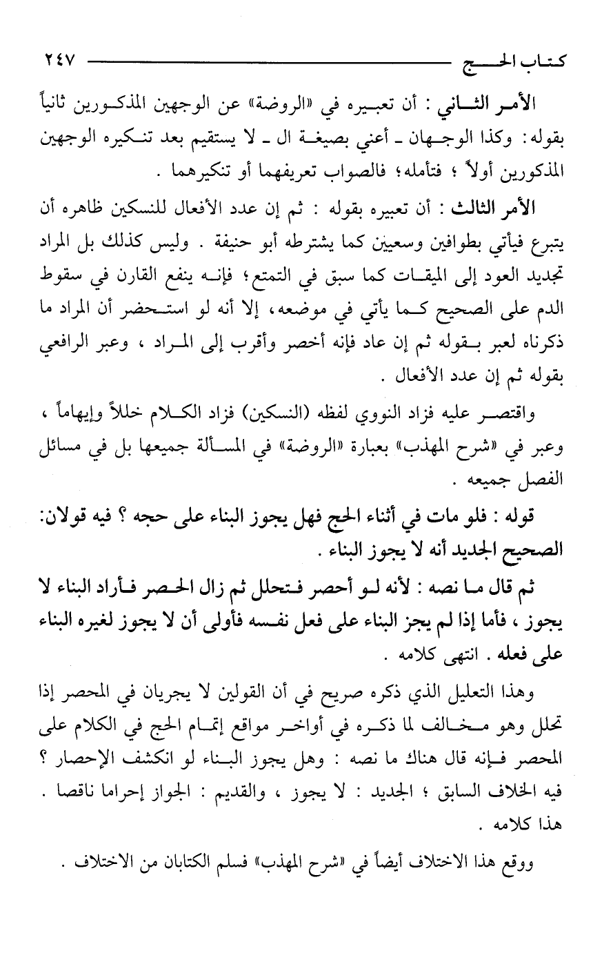 الأمر الثاني: أن تعبيره في "الروضة" عن الوجهين المذكورين ثانيًا بقوله: وكذا الوجهان -أعني بصيغة ال- لا يستقيم بعد تنكيره الوجهين المذكورين أولًا؛ فتأمله؛ فالصواب تعريفهما أو تنكيرهما.