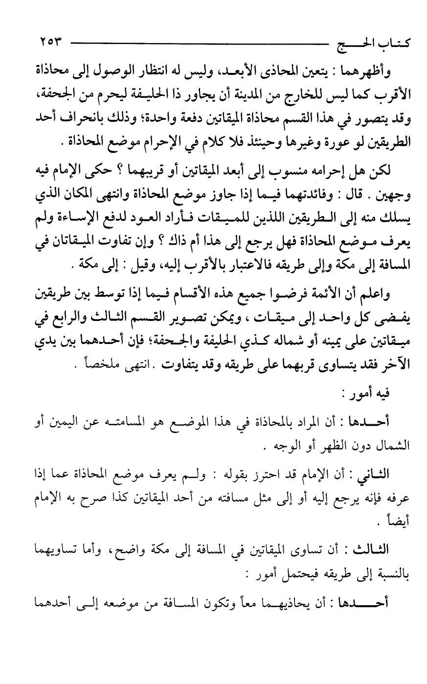الثالث: أن تساوى الميقاتين في المسافة إلى مكة واضح، وأما تساويهما بالنسبة إلى طريقه فيحتمل أمور: