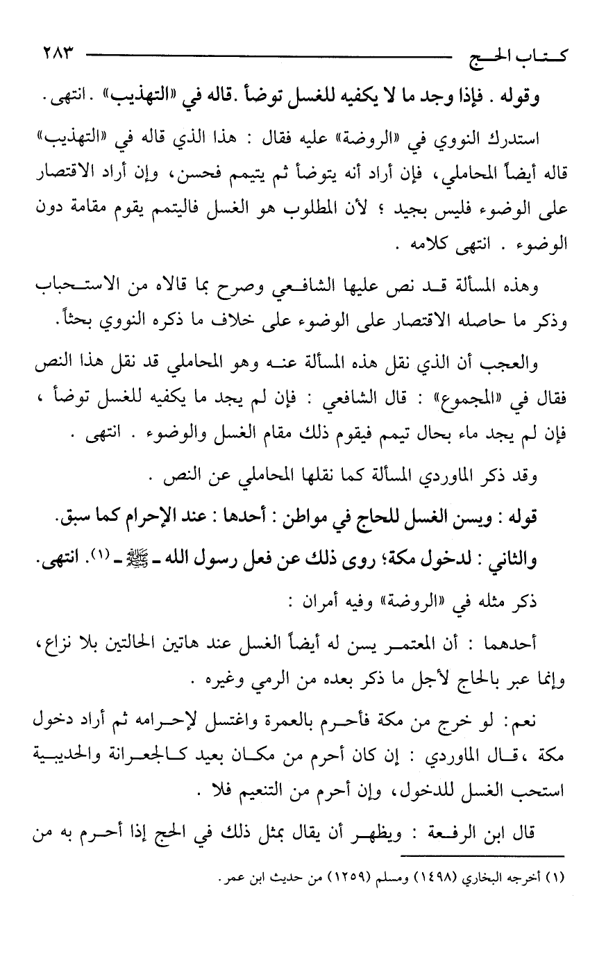 وهذه المسألة قد نص عليها الشافعي وصرح بما قالاه من الاستحباب وذكر ما حاصله الاقتصار على الوضوء على خلاف ما ذكره النووي بحثًا.