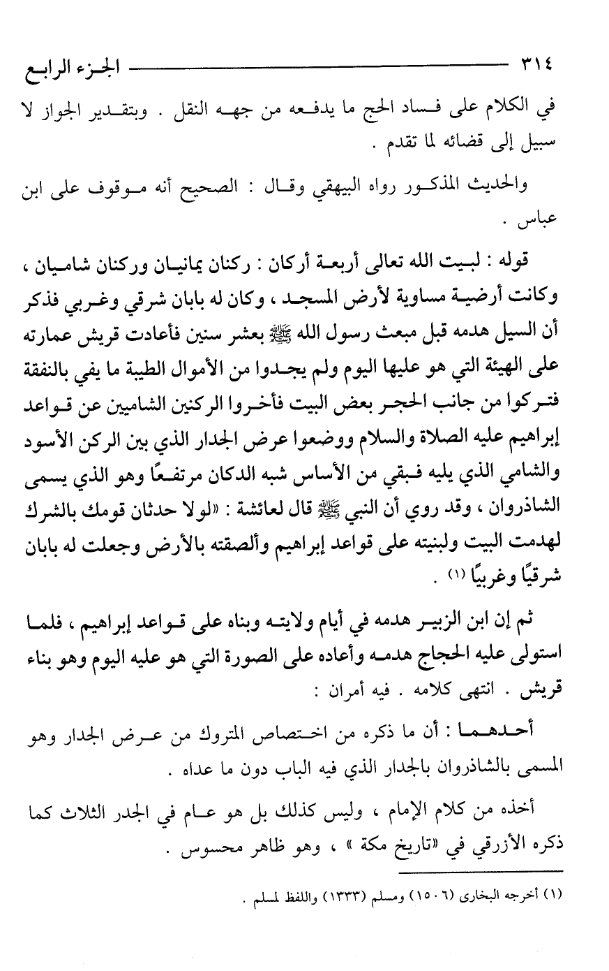 أحدهما: أن ما ذكره من اختصاص المتروك من عرض الجدار وهو المسمى بالشاذروان بالجدار الذي فيه الباب دون ما عداه.
