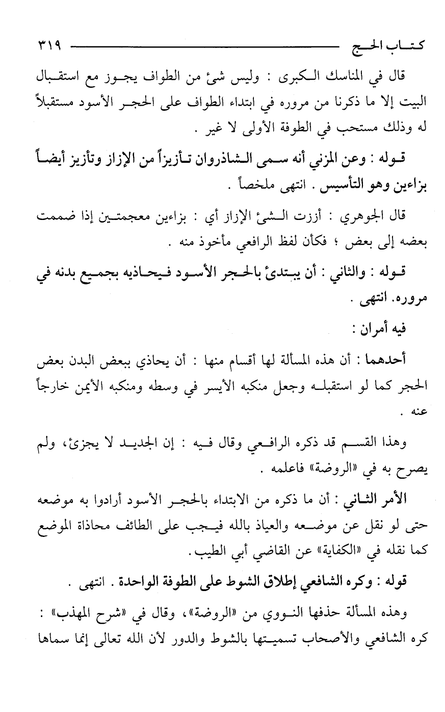 قوله: وعن المزني أنه سمى الشاذروان تأزيزًا من الإزاز وتأزيز أيضًا بزاءين وهو التأسيس. انتهى ملخصًا.