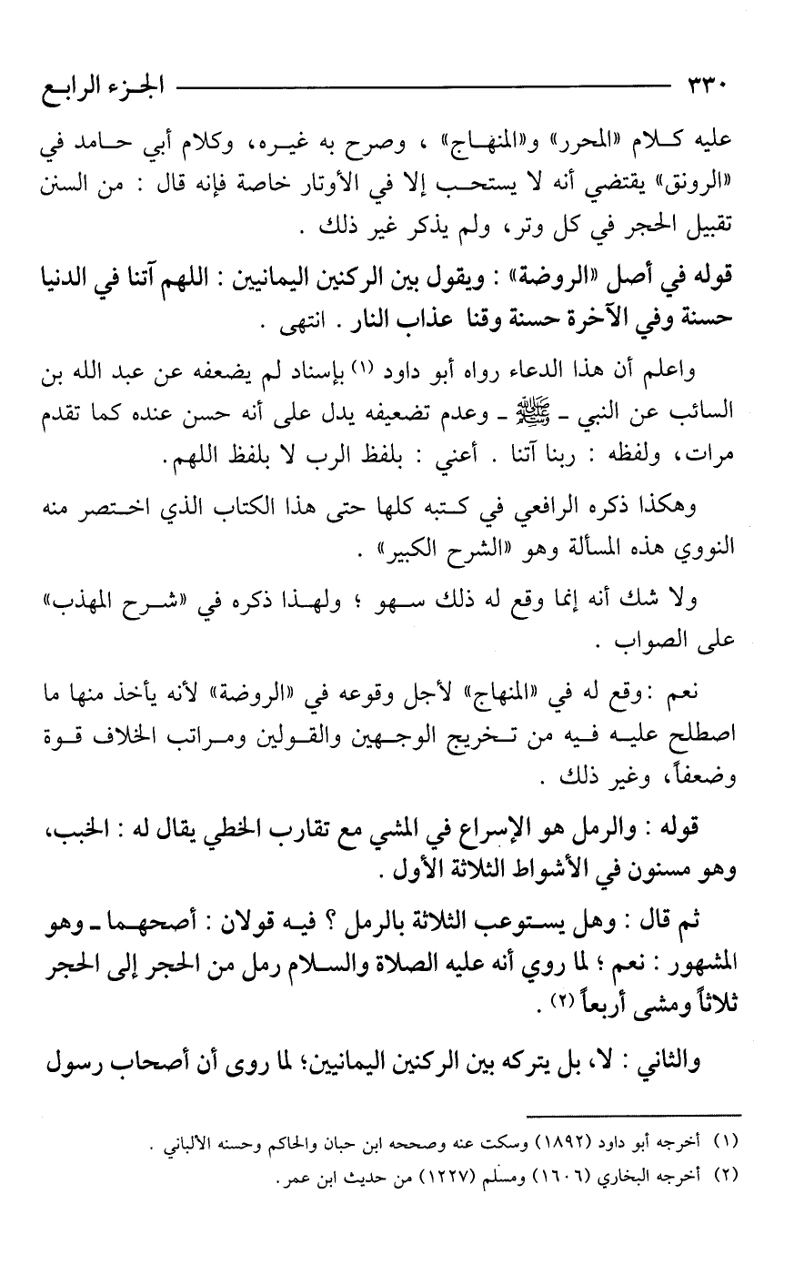 قوله في أصل "الروضة": ويقول بين الركنين اليمانيين: اللهم آتنا في الدنيا حسنة وفي الآخرة حسنة وقنا عذاب النار. انتهى.