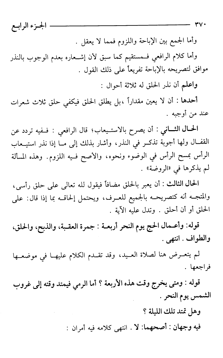 واعلم أن نذر الحلق له ثلاثة أحوال:
